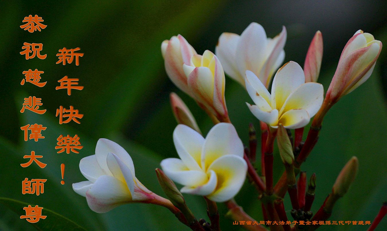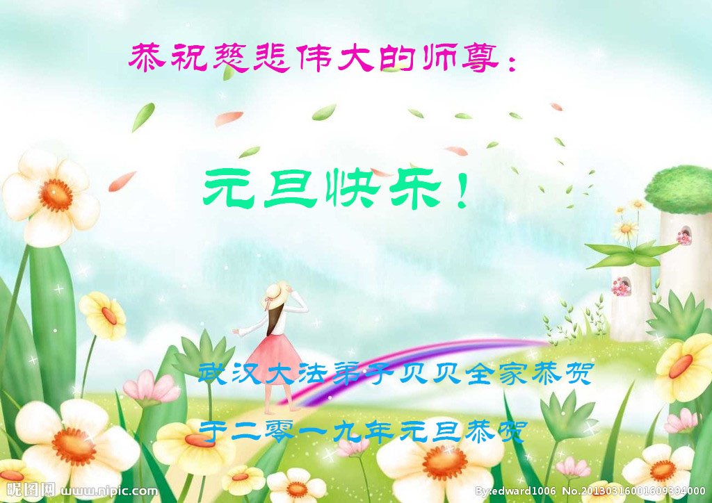 恭祝李大师元旦快乐!新年好!感恩李大师您的慈悲救度!把法轮大法的美好赐给我们!您的弟子告诉我们法轮大法真相,并让我们三退后诚念“法轮大法好!真善忍好!”我们就拥有了健康的身体以及给家人也带来了幸运,做生意和做事都兴旺顺利,告诉家人大法好他们也事事顺。