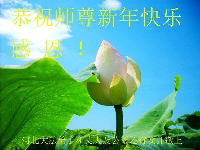 得法前,我的脾气很暴躁,计较个人利益,得理不让人。得法后,我明白了做人的道理,时时处处按照真、善、忍的法理要求自己,凡事都为他人着想,脾气也变好了,周围的人都说我好像换了个人似的。快到新年了,我代表全家大法弟子恭祝师父新年好!”