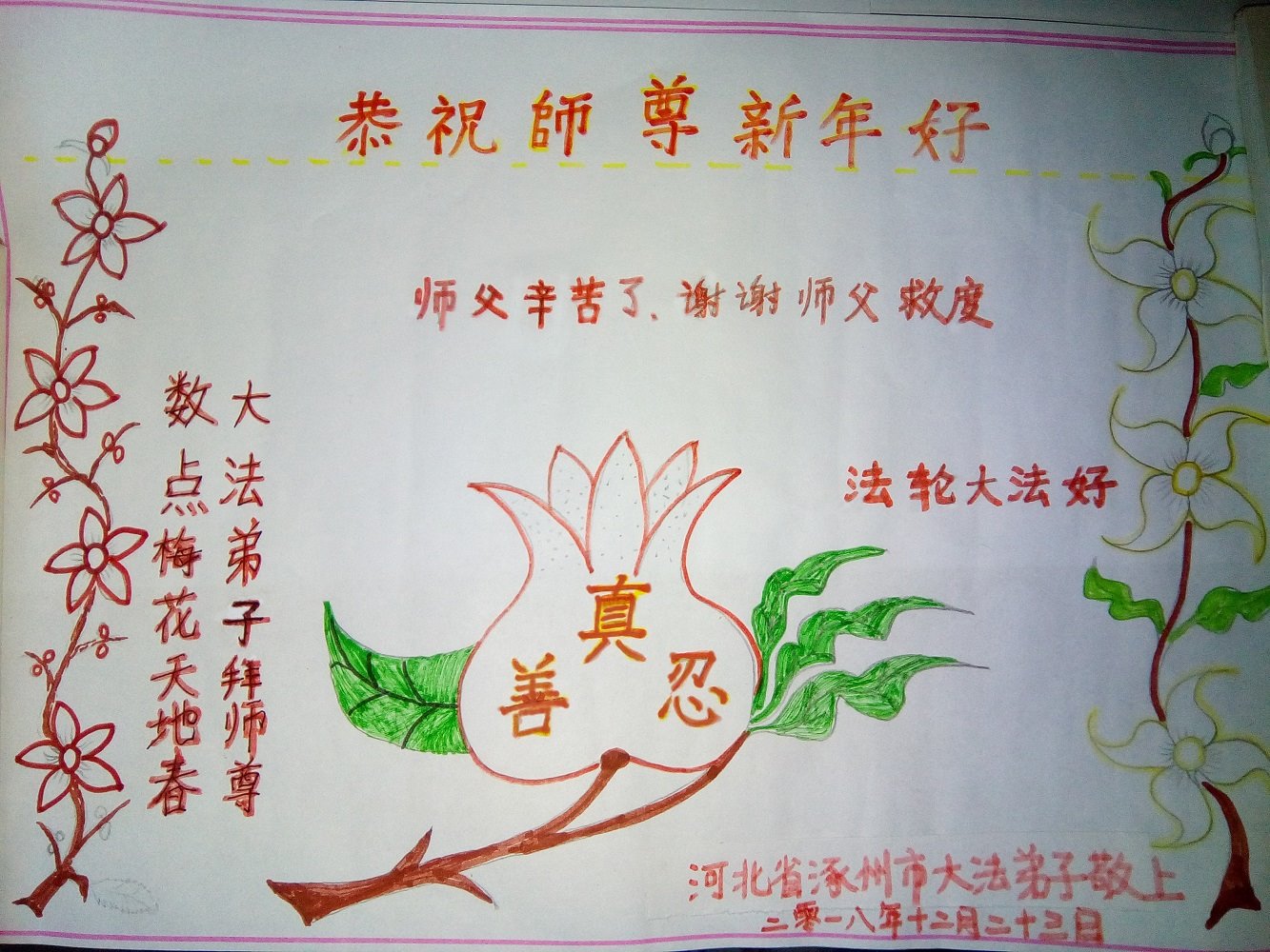 <英文版: http://en.minghui.org/html/articles/2018/12/31/174002.html>墨尔本法轮功学员恭祝师父新年好(图)