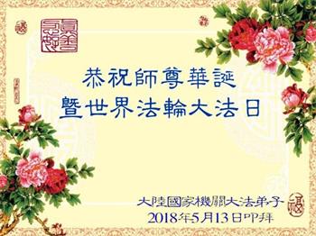中国大陆公检法系统、各级政府部门及军中现役、转业的大法弟子与世界各地的弟子们一起,恭祝师父生日快乐!向师父表达无限感恩!