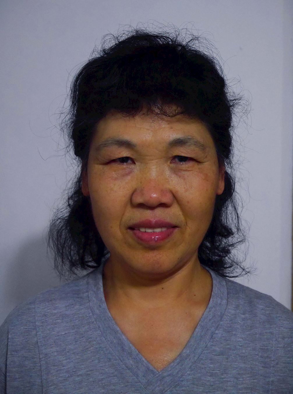 庞金英,女,当年五十岁左右,怀柔区人。二零零零年,因制作真相资料,被非法判刑四年。在派遣处关押时,想不通自己一个向善做好人的良家妇女,为何被当作罪犯看待。被逼迫穿囚服时不配合,后她被送往女子监狱二监区时,头上被戴了铁帽子,手被铐着。女监狱警的借口是怕她撞墙,逼迫她认罪转化,一直戴了两个月,受到的迫害可想而知。