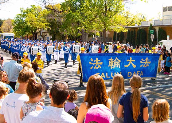 四月十三日星期六,法轮功学员应邀参加了美国加州大学戴维斯分校举行的第一百零五届“野餐节”游行。