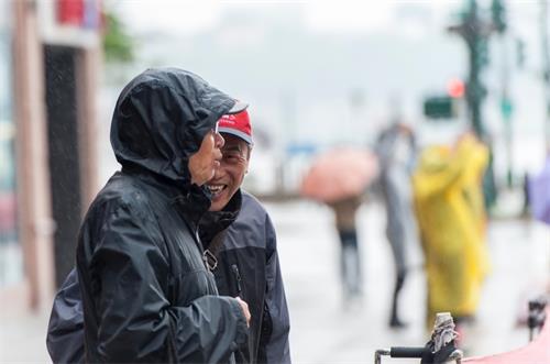 纽约中领馆前的空地,是个河边风口,几乎是纽约市最冷、风最大的地方。二零一五年冬天的一次大风,将一位九十岁的老年学员刮倒在地,这名年轻男子第一个冲过去扶起那位老阿姨。原来,平日里老阿姨一直和善地为他讲真相。他虽然不说什么,但感受到了老阿姨为他好的那颗心。在其他法轮功学员的帮助下,老阿姨坐了起来,马上又能走路了。看到这位年迈的法轮功学员被重重摔倒之后马上没事了,这位青年男子受到震动。那天,他接连几次上前问老阿姨:“你没事吧?”此事过后不久,他对法轮功学员说:“我们再也不发传单了。”之后,他俩果然不再发诬蔑传单了。又过了没几日,他说:“我以后不来了。”后来,他真的再也没有出现在中领馆前参与干坏事。
