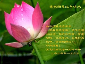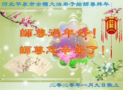 在中国传统新年来临之际,我们海淀区铁路系统大法弟子并代表家人同修及明真相的世人给慈悲伟大的师尊拜年!师尊过年好!
