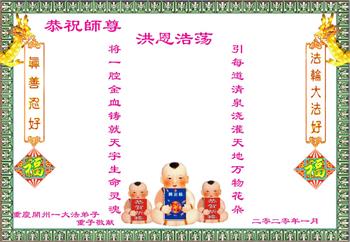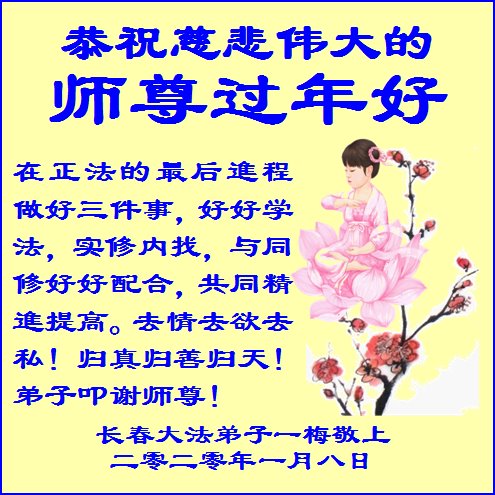 在中国新年传统佳节之际,一家家老幼大法弟子以一封封贺信、一张张贺卡,汇作无尽的感恩:感谢师尊洪恩浩荡!恭祝师尊新年快乐!