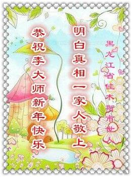 我家兄妹五人,昨天晚上我值班侍候父亲,我跟父亲说,全世界的大法弟子和明白真相的人,都给师父发贺信。父亲听后,眼泪刷一下就下来了。我说您是不是也想恭祝师父新年好?父亲说是。因父母家没有宽带,没法上网,所以今晚替我父亲表达心愿。