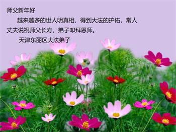 身为大法弟子的家人,一路陪伴着走过来,见证了大法的神奇和大法弟子对师父的坚信与崇敬。作为家人同样感动和敬佩,这就是伟大的法造就了坚信大法师父的弟子。转眼又是一年到来,感恩师父,恭祝师父事事如意,新年快乐!