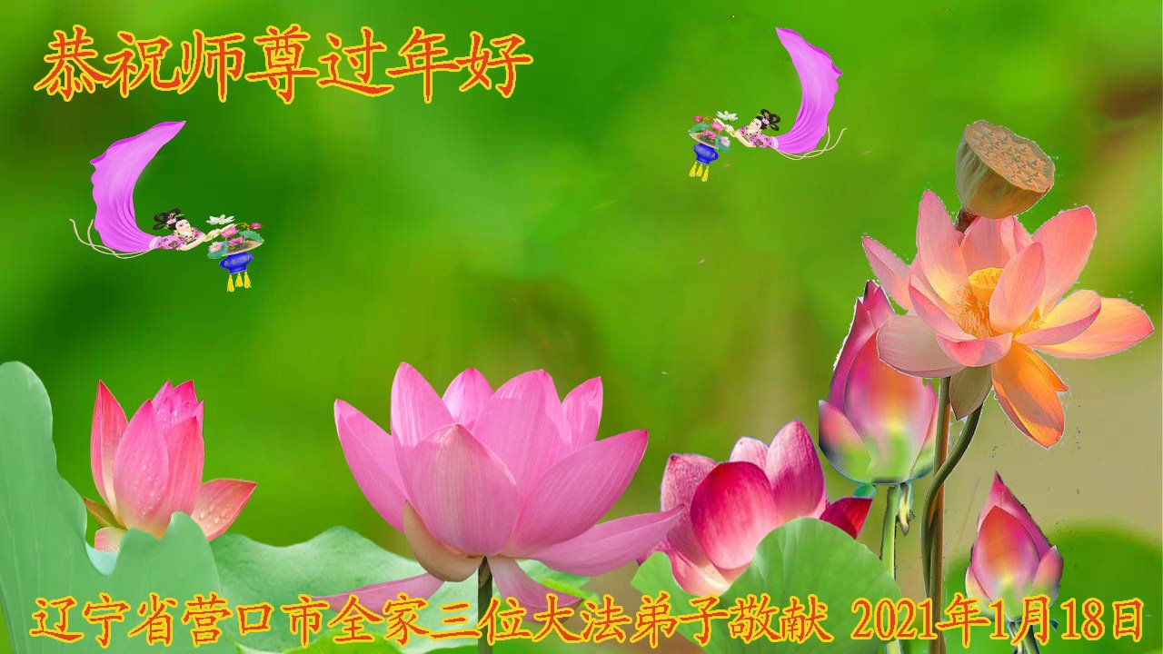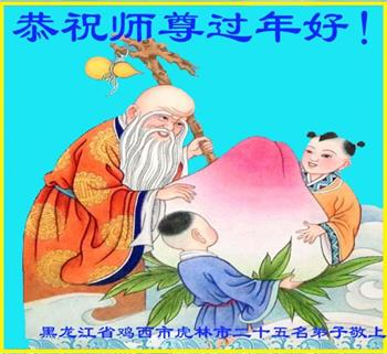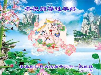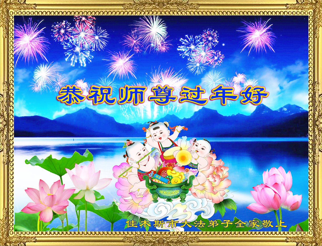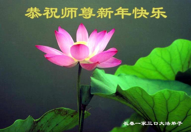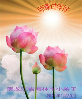 黑龙江省哈尔滨市一家人恭祝大师新年快乐!他们说:“在这中共病毒瘟疫肆虐、多灾多难的时候,我们不会惧怕,我们相信在大师的慈悲保护下,心怀善念,常颂‘法轮大法好,真善忍好!’这避瘟良方定会使全家平安健康,渡过劫难。”