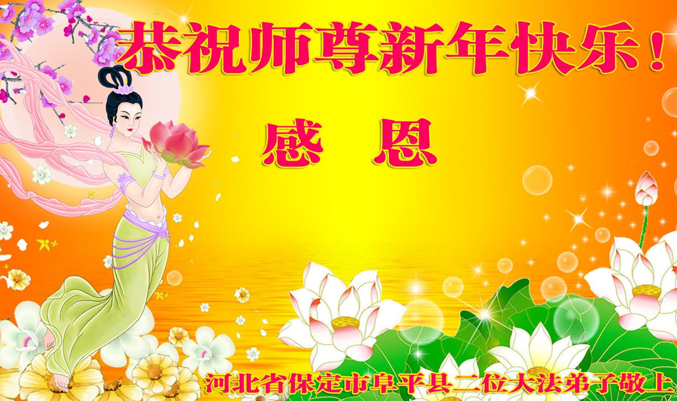 我们是奉读大法、明白真相的世人,虽未修炼,但大法与大法师父遭到诽谤和诬陷时,只要我遇到,会毫不犹豫的站出来维护大法师父的尊严和名誉。因为大法是正的,大法师父是圣洁的,是来救人的。大法师父:过年了,我们夫妇俩给您拜年!祝您过年好!