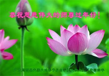 中国大陆一律师事务所全体人员发来贺词写道:“我们非常感谢您的慈悲救度!是您的佛光普照着中华大地,才使我们有机缘听闻真相。您的弟子秉承着您的法旨,不厌其烦的向世人讲述着真相,才使我们终于能够有机会得到您的慈悲眷顾……我们庆幸自己选择了正义。我们衷心感谢慈悲伟大的李大师!我们祈盼着您能够早日回归故国!”