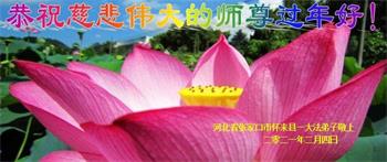 河北石家庄辛集的明白真相的人们恭祝李大师新年好!同时祝贺您的弟子又走过了这不平凡的一年,在疫情期间还在救人。可以说大法师父和大法弟子都在救度众生。我们也祝你们一臂之力,早日结束这场迫害。愿您的弟子不再遭迫害。解体中共。谢谢您和您的弟子们!