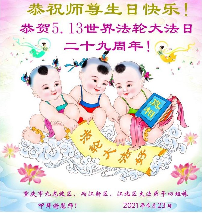 二十九年来,大法修炼者遍布中国大陆各个领域,在工作、学习、日常生活着践行着真、善、忍。值此五月十三日来临之际,来自中国五十余行业的大法弟子,遥祝慈悲伟大的师父华诞快乐!同贺世界法轮大法日!