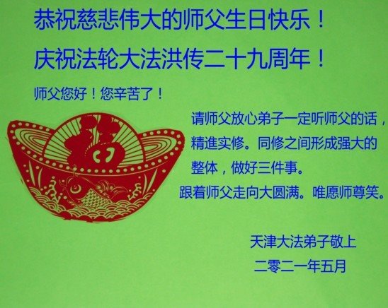 • 天津大法弟子恭贺世界法轮大法日暨师尊华诞(22条)