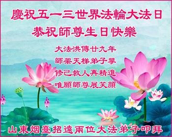 • 潍坊大法弟子恭贺世界法轮大法日暨师尊华诞(22条)