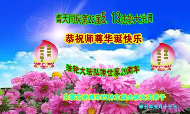 • 葫芦岛大法弟子恭贺世界法轮大法日暨师尊华诞(21条)