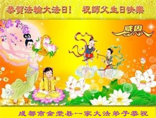 • 成都大法弟子恭贺世界法轮大法日暨师尊华诞(21条)