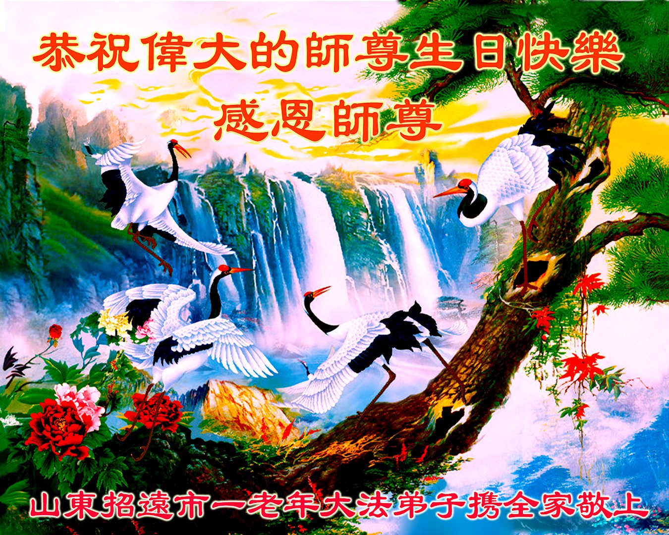 感谢师父的救命之恩,我原来患有血小板减少,碰一下身上就会紫一块、颈椎病、哮喘病、胃病等痛苦不堪。98年得法炼功后,不久,所有症状都没有了,走路上楼跟有人推我一样。谢谢师父给了我第二次生命,我的家人也得到师父的保护。弟子唯有努力做好三件事,不辜负师父的慈悲苦度。我们全家人恭祝慈悲伟大的师父生日快乐!