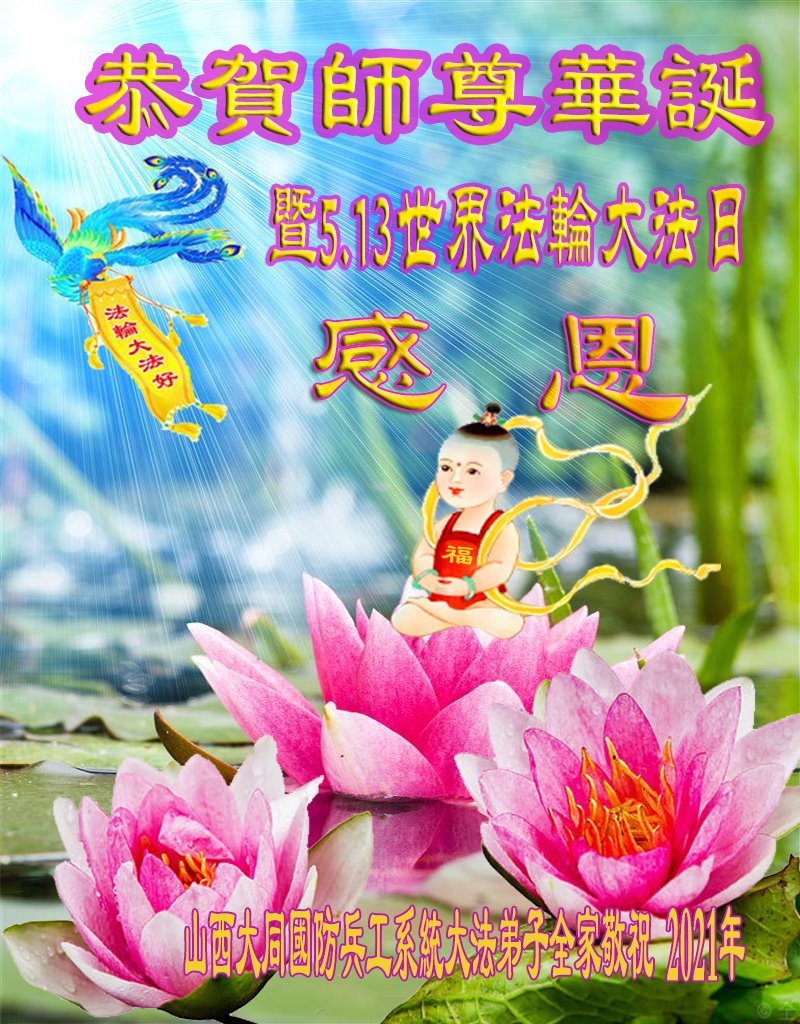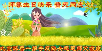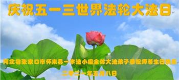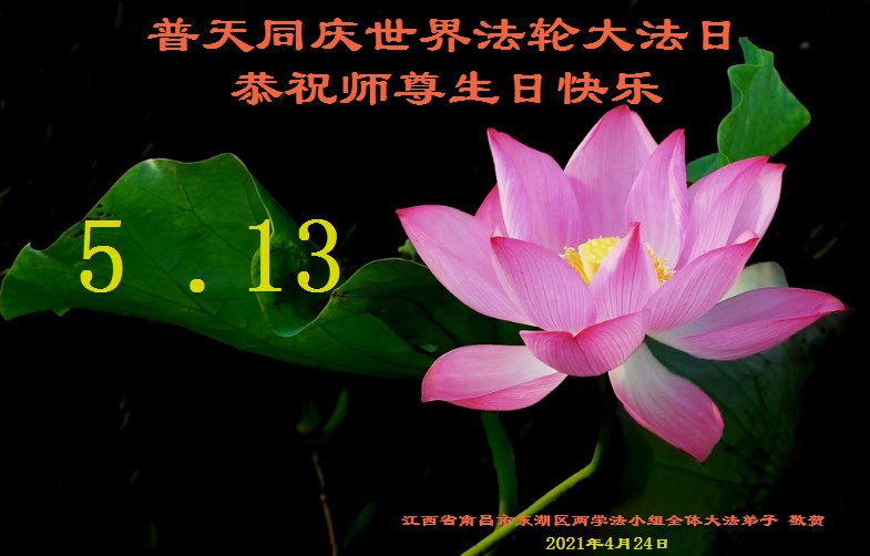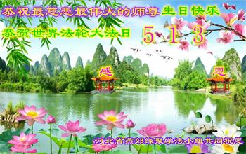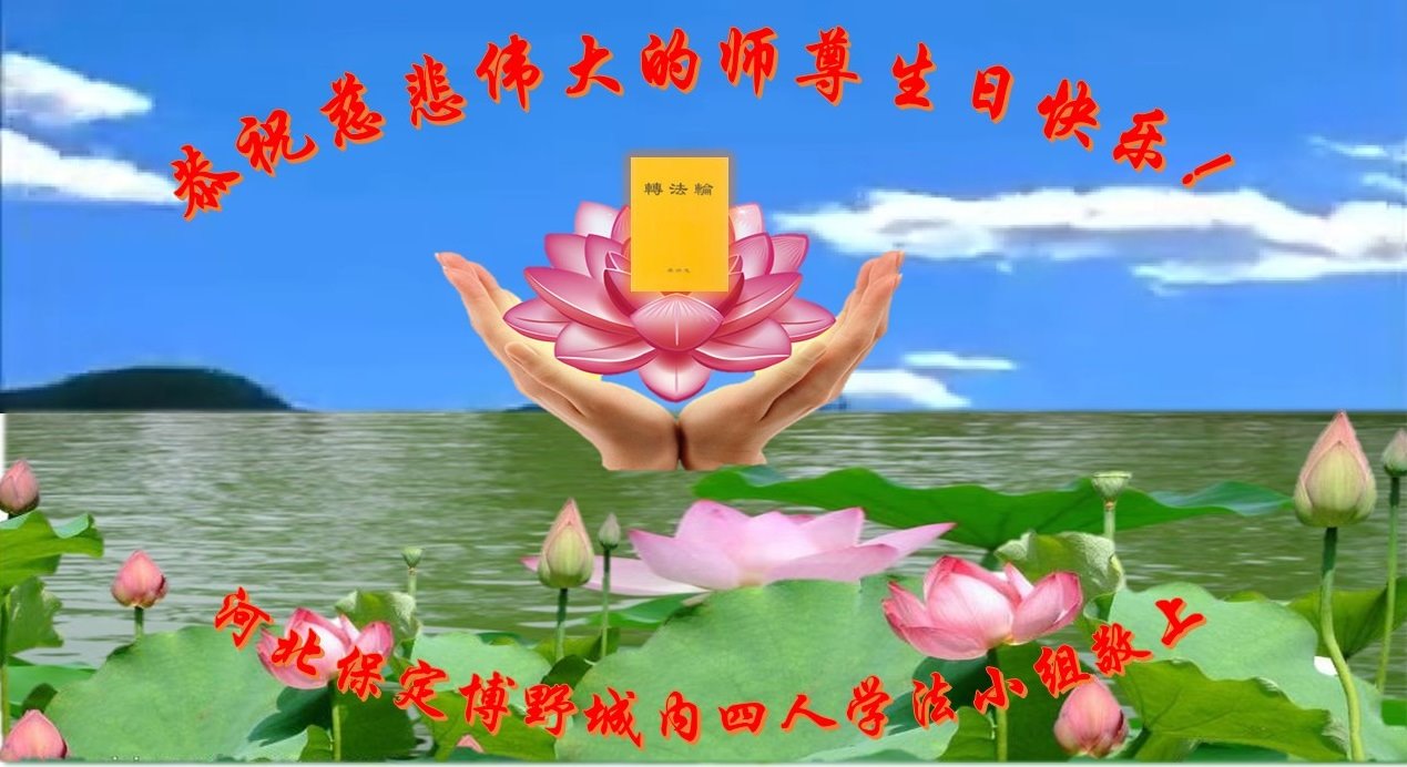 5月13日,是法轮大法日也是师父的生日,我们天津市西青区学法小组六位大法弟子,恭祝师父生日快乐!我们会自始至终做好师父交代的三件事,不忘自己的使命,责任,在学好法,发好正念的基础上,讲清真相多救人,圆圆满满的跟师父回家。