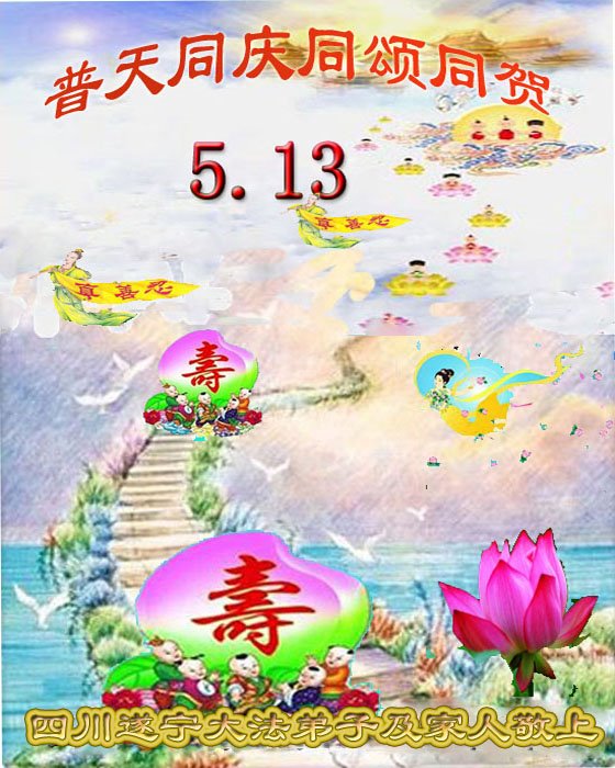 五·一三普天同祝同贺,师尊传法度众生,弟子须精進再精進,证实法讲真相救众生,放下执着放下人心名利情,莫懈怠莫安逸莫消极,反迫害不迷途,做好三件事,兑现誓约。