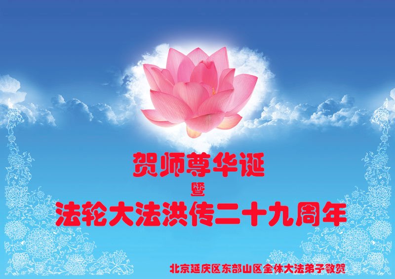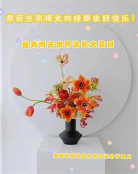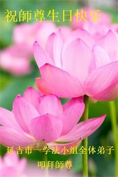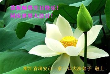 在这普天同庆的日子里,浙江省宁波余姚市全体大法弟子恭贺师尊生日快乐!暨法轮大法日!弟子一定会勇猛精進,做好三件事。