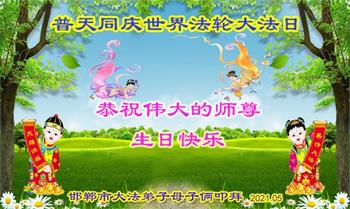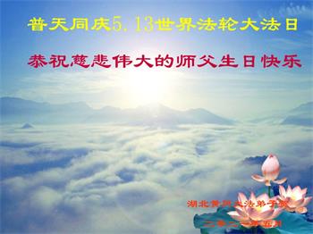 在二零二一年五一三世界法轮大法日即将到来之际,在这普天同庆同庆的时刻,湖北省孝感市安陆市一学法小组在此遥祝慈悲伟大的师尊生日快乐!我们会继续做好助师正法,救度众生的事,谢谢师尊。