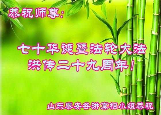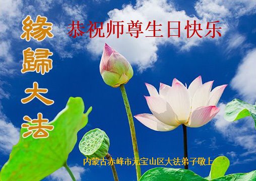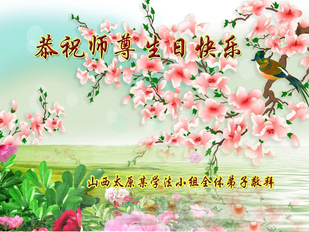 师尊生日即将到来,我们学法小组全体大法弟子恭祝师尊生日快乐!并代表我们的家人和明真相得福报的世人,祝伟大慈悲的师父生日快乐!感恩师父的慈悲救度,得救的众生祝师父生日快乐!我们学法小组整体配合,提高心性,学好法做好三件事,多救众生,感谢师父的慈悲救度。