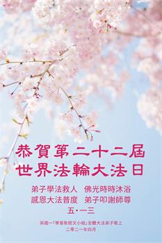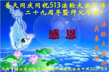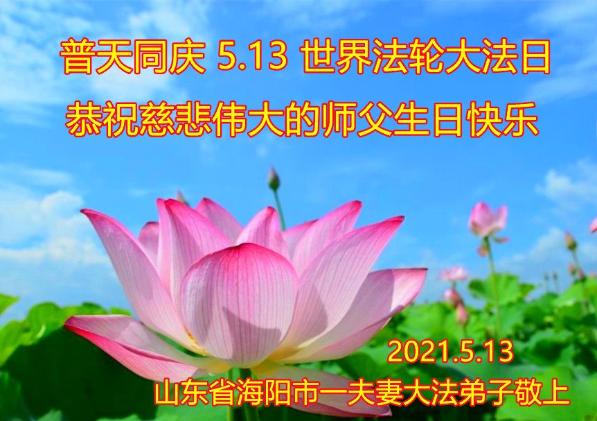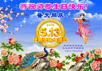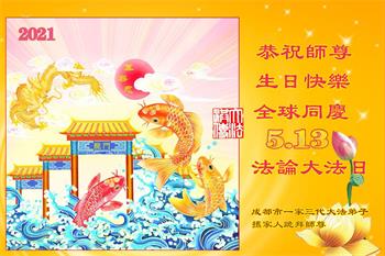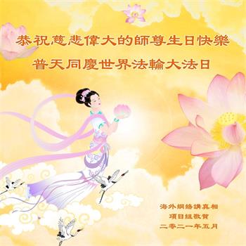 【明慧网二零二一年五月十三日】五月十三日是寰宇焕发光彩的一天。二十九年前的这一天,李洪志先生开始亲传法轮大法。末劫之时的宇宙有了生机,众生有了希望。至今,世界各地上亿人听闻大法,走上返本归真的修炼之路。大法给他们的家庭带来健康、和谐和幸福,给他们所在的国家和地区带来福祉。