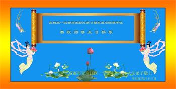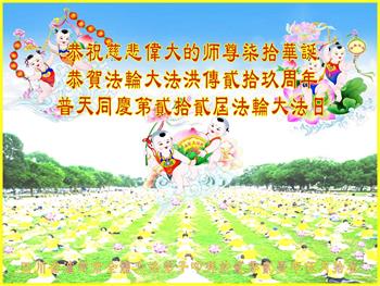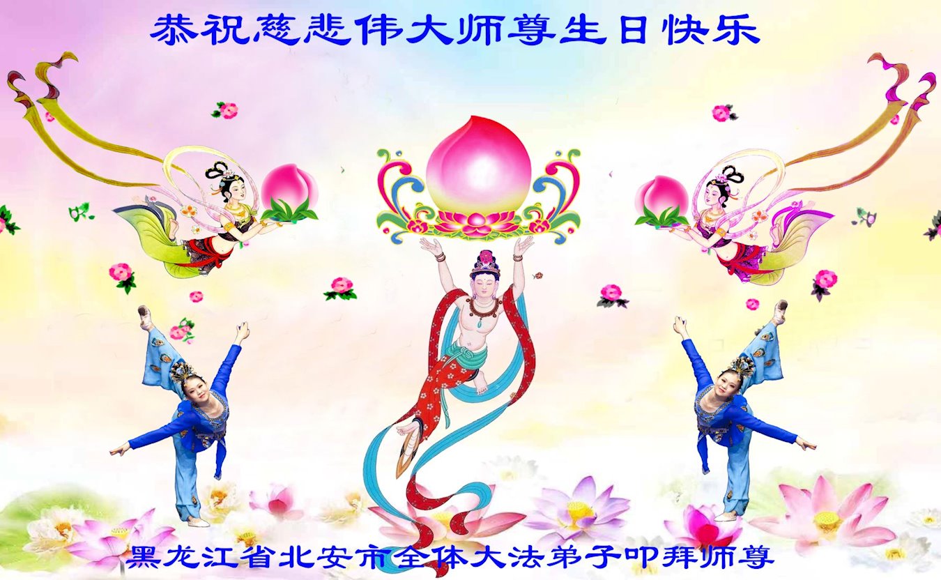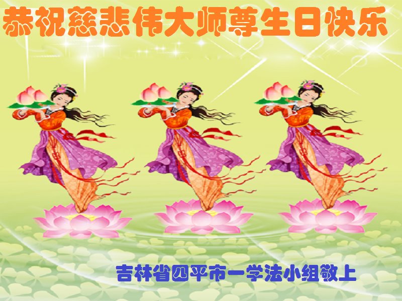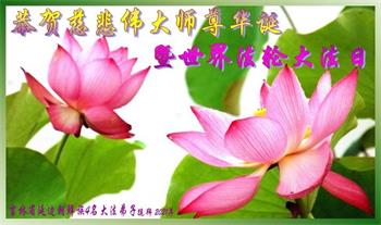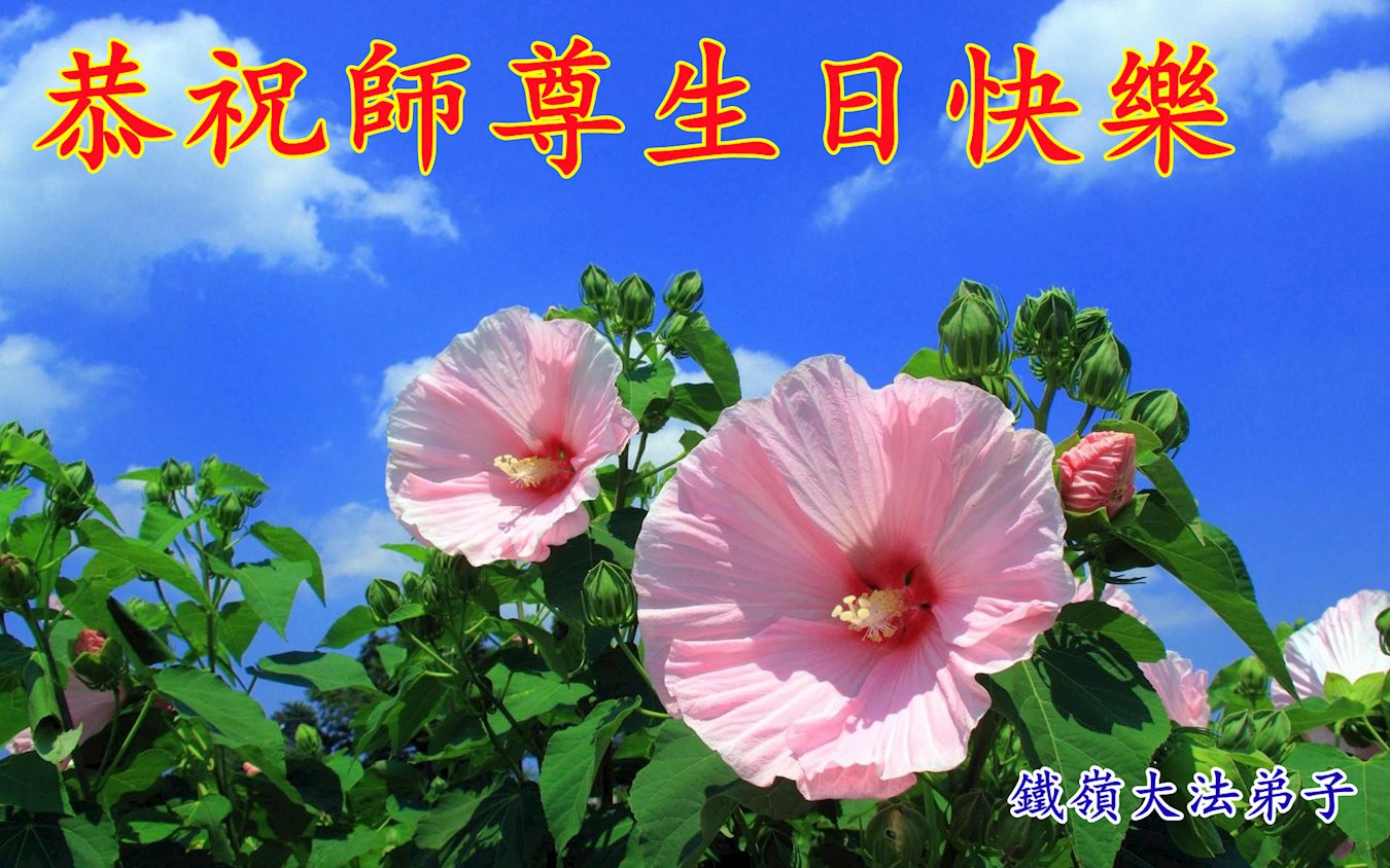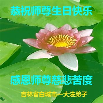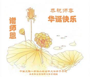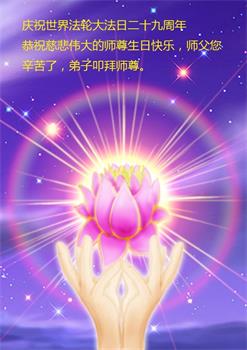 我们带着无比的敬意,向慈悲苦度众生的师尊,献上最诚挚的感恩和祝愿。我们一定会努力精進,把大法美好的福音带给世人。