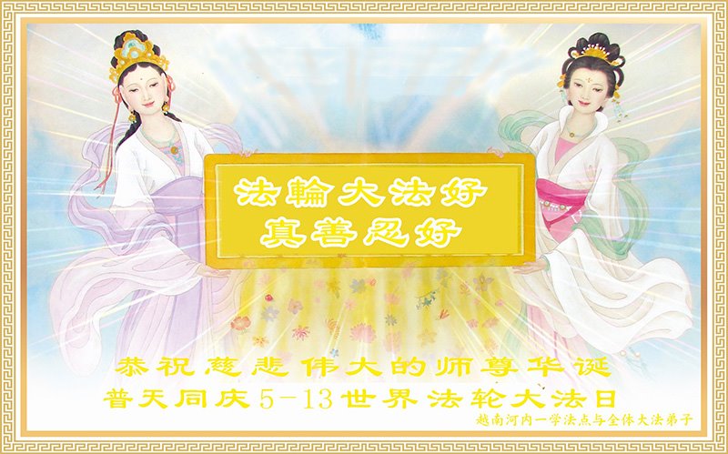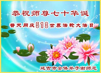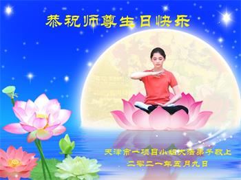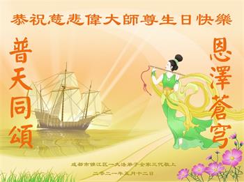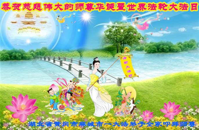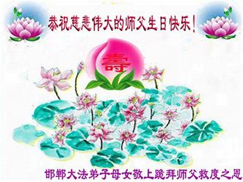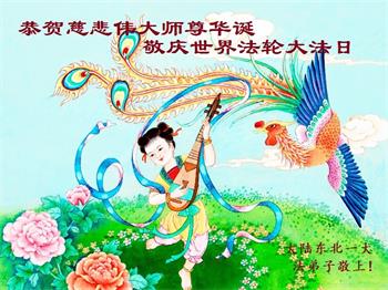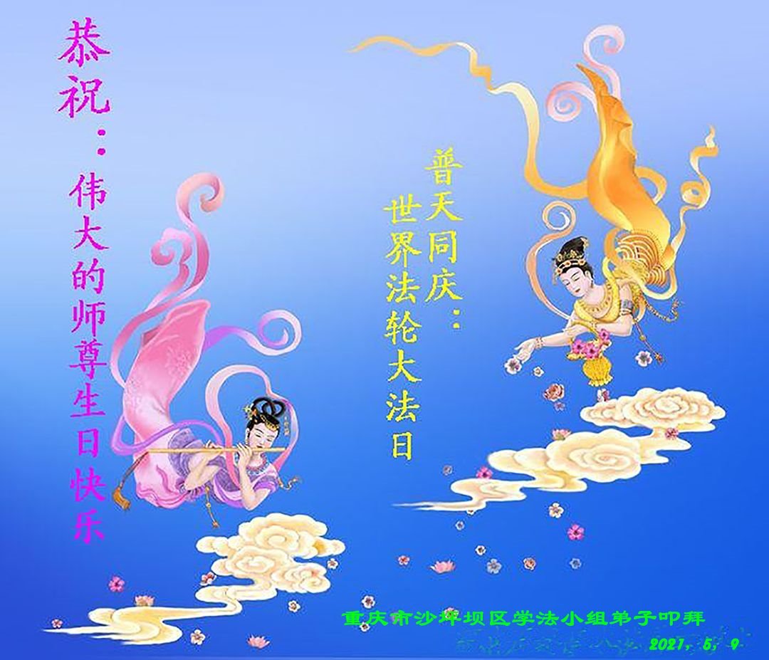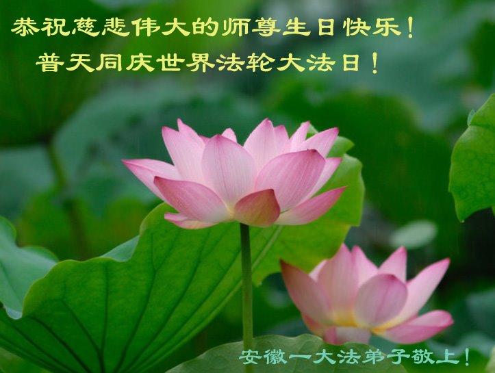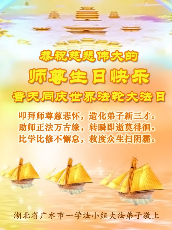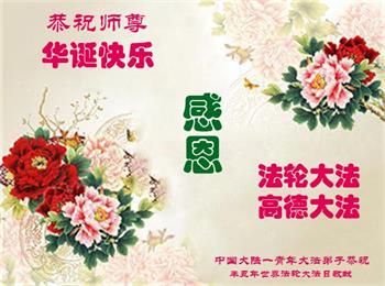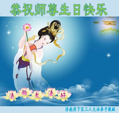 我们带着无比的敬意,向慈悲苦度众生的师尊,献上最诚挚的感恩和祝愿。我们一定会努力精進,把大法美好的福音带给世人。
