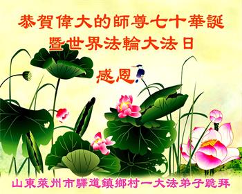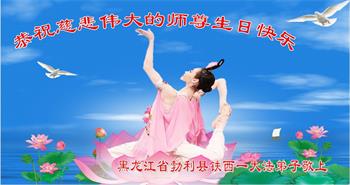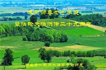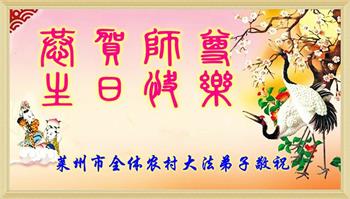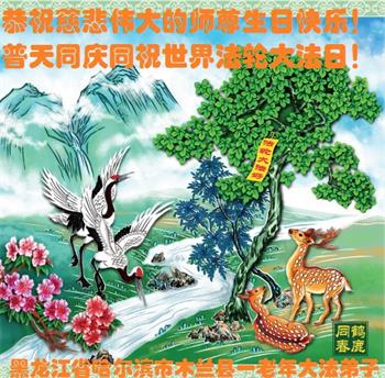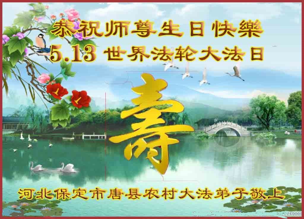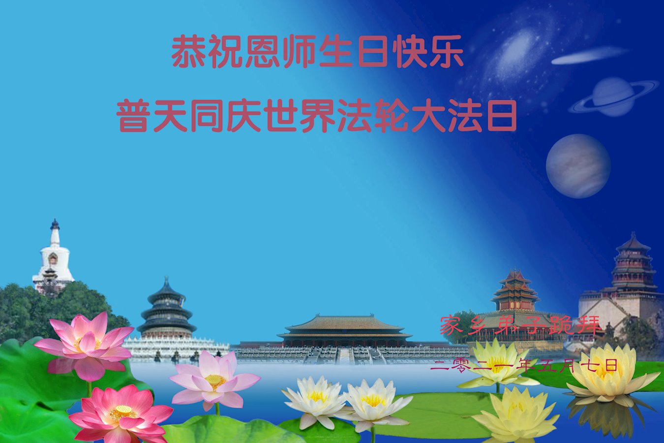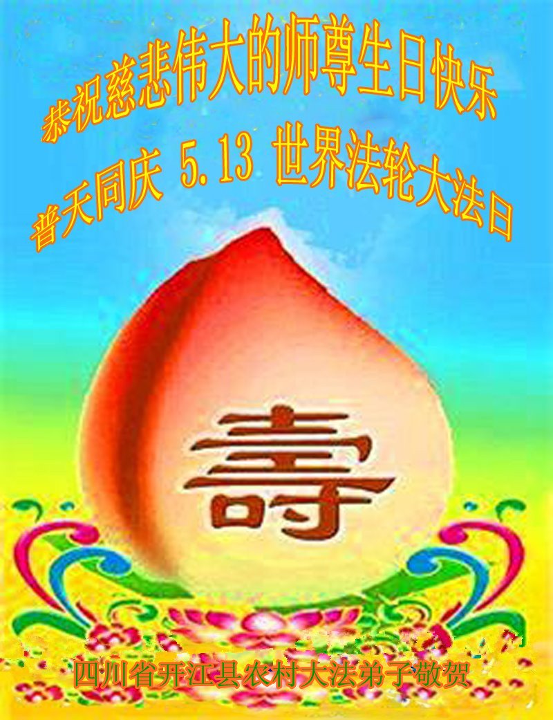 中国各省广大农村地区大法弟子热忱祝贺师尊华诞!恭贺世界法轮大法日!大法弟子们由衷的感谢师父引导弟子们走上返本归真之路,并时时刻刻看护着弟子。弟子们走过了二十多个年头,虽有千言万语,不知从何说起。唯有更加精進实修,多救人,兑现来世的誓约,不负师恩。