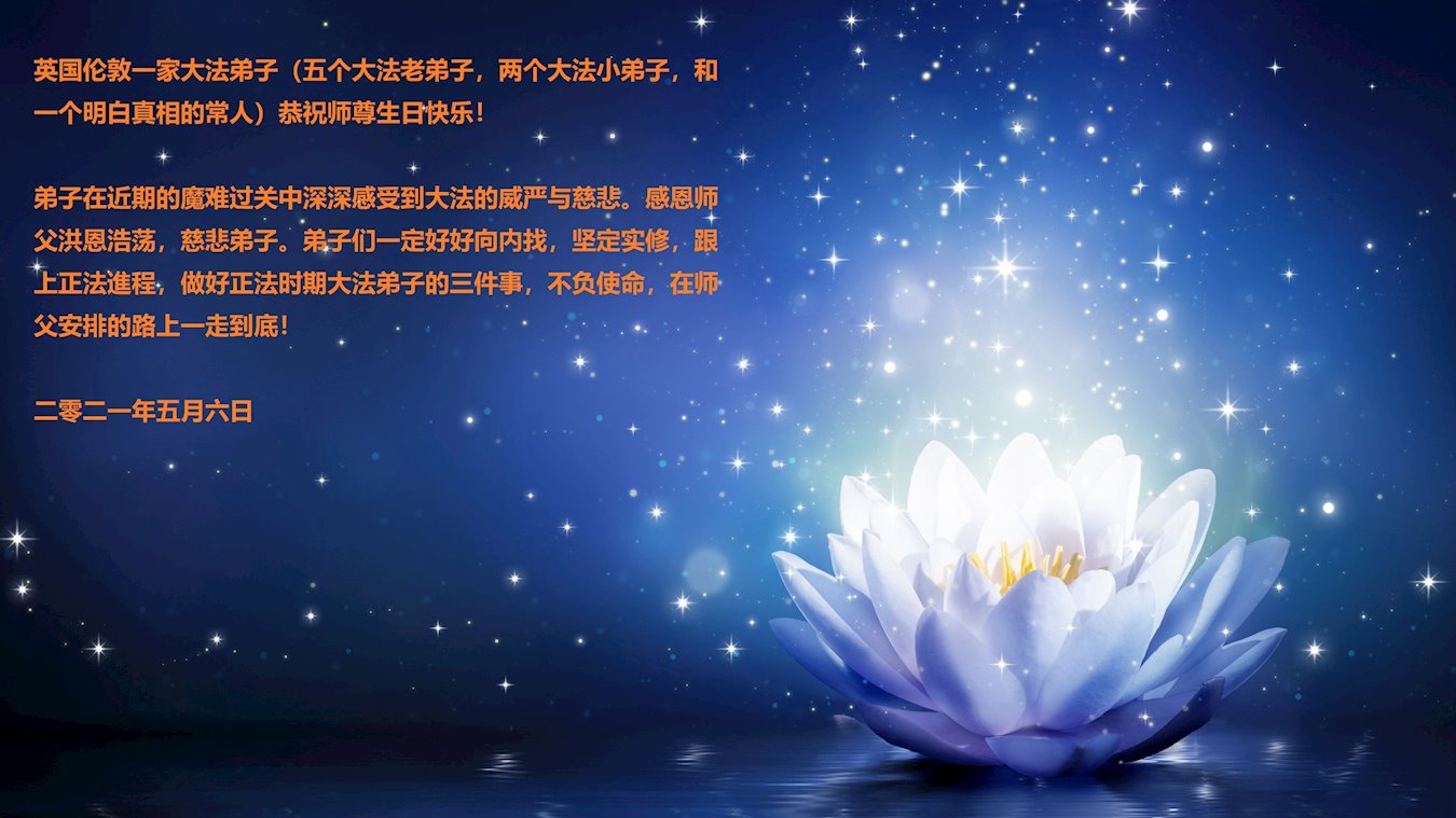 “每逢佳节倍思亲”!在慈悲伟大的师尊华诞及世界法轮大法日到来之际,弟子们感恩师尊不辞艰辛将我们从地狱中捞出、洗净,将宇宙宇宙大法洪传于世间,引导我们走上返本归真之路。得法的生命深深的感恩!