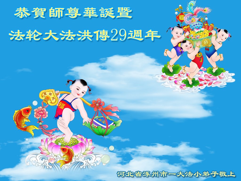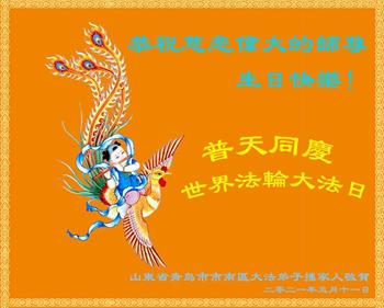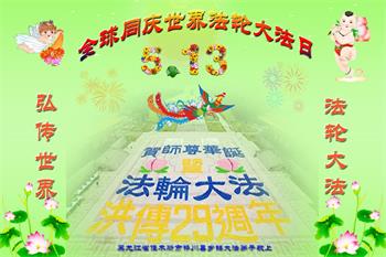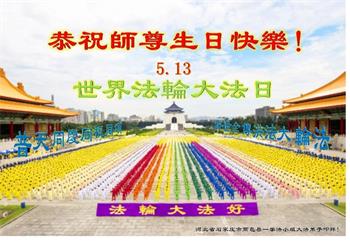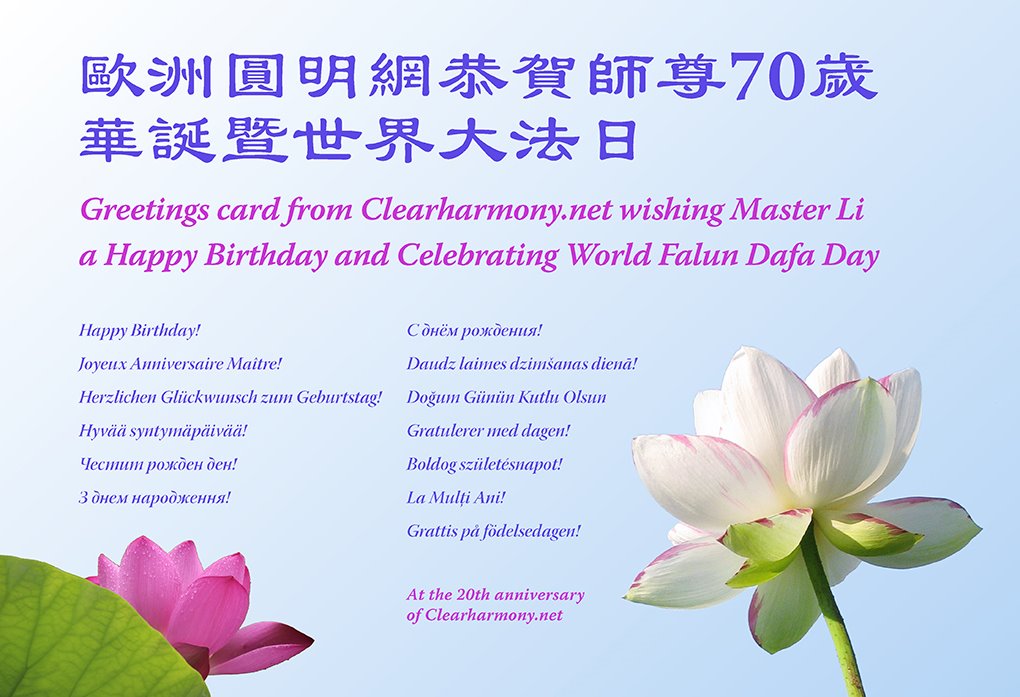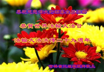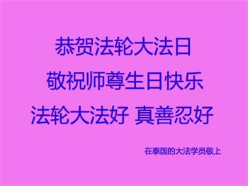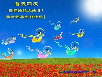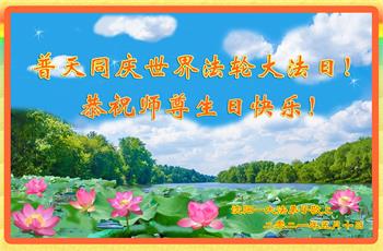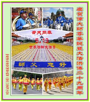 “五·一三”到来之际,世界各个国家和地区大法弟子恭祝恩师华诞快乐!同贺世界法轮大法日,法轮大法洪传二十九周年!下面是来自美国、澳大利亚、加拿大、新西兰、日本、越南、巴西、法国、英国、俄罗斯、芬兰、土耳其、瑞士、西非多哥、台湾、新加坡、西班牙、瑞典、奥地利、韩国、马来西亚、泰国、波兰、印度尼西亚、挪威、荷兰、塞浦路斯、泰国、保加利亚、捷克、斯洛伐克、德国、斯洛文尼亚、尼泊尔、匈牙利、爱尔兰、厄瓜多尔、克罗地亚、丹麦、意大利、波黑、希腊、乌克兰、罗马尼亚、塞尔维亚和黑山、葡萄牙、香港、澳门、墨西哥、菲律宾、比利时、加蓬、南非、印度、尼泊尔、伊朗、以色列、阿富汗、亚美尼亚、沙特阿拉伯、立陶宛、爱沙尼亚、拉脱维亚等63个国家和地区部份大法弟子的恭贺。