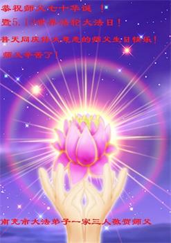 师尊您好:我们一家五人一定紧跟师父正法進程,珍惜师尊正法所剩不多的时间,多学法,实修自己,做好三件事,配合整体,圆容师尊所要的,多救人。感恩师尊的慈悲救度!师尊辛苦了!