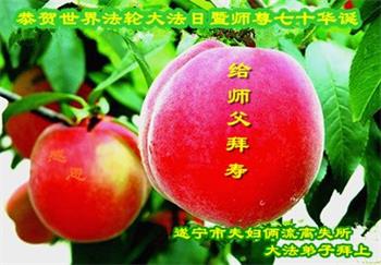 欣迎大法日,贺寿到师前,手捧莲花心澎湃,师恩难忘一件件。