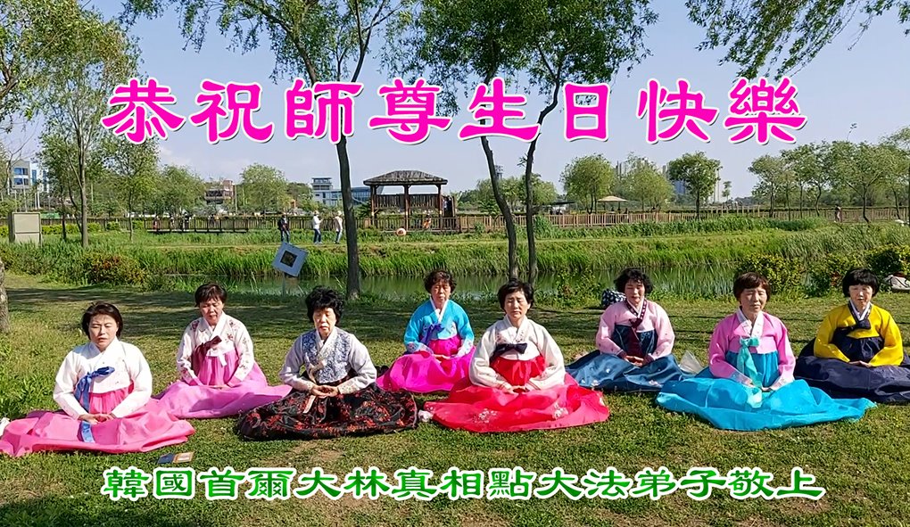 韩国首尔北部全体大法弟子恭贺师父华诞!庆祝世界法轮大法日!