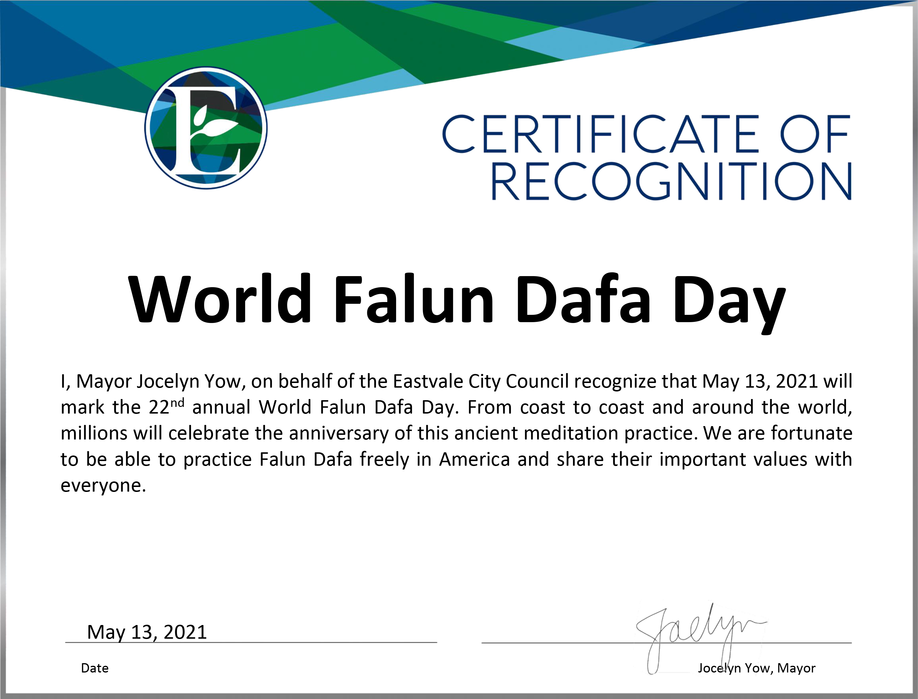 库卡蒙加牧场市(Rancho Cucamonga)加州政府重点规划的三大城市之一,该市全体市议会颁发褒奖,并将二零二一年五月十三日定为该市的“法轮大法日”。他们在褒奖状中说:“鉴于二零二一年五月十三日是法轮大法传世二十二周年。鉴于五月十三日被指定为‘世界法轮大法日’,我们应该与世界各地的修炼者一起,庆祝这个以‘真、善、忍’普世价值为宗旨的传统身心修炼大法。因此,库卡蒙加牧场市议会特此确认二零二一年五月十三日为库卡蒙加牧场市‘世界法轮大法日’,并敦促所有不同信仰的公民以自己的方式来纪念这个日子。”