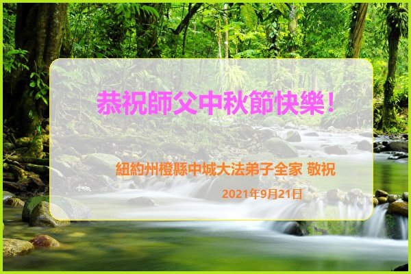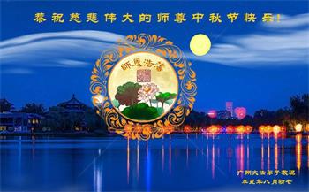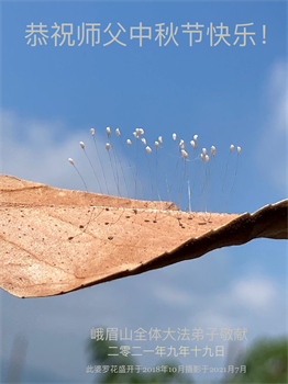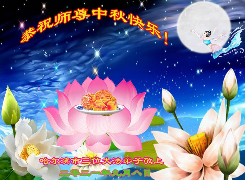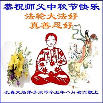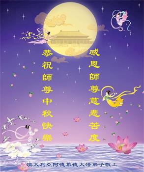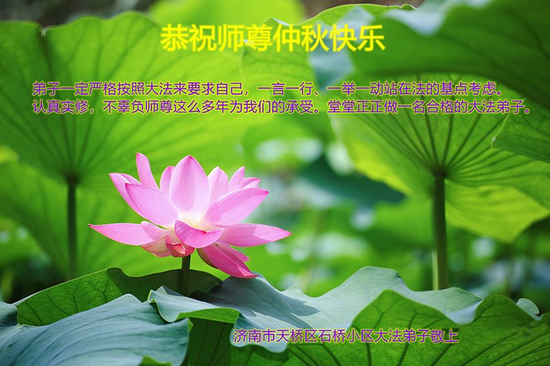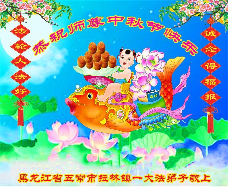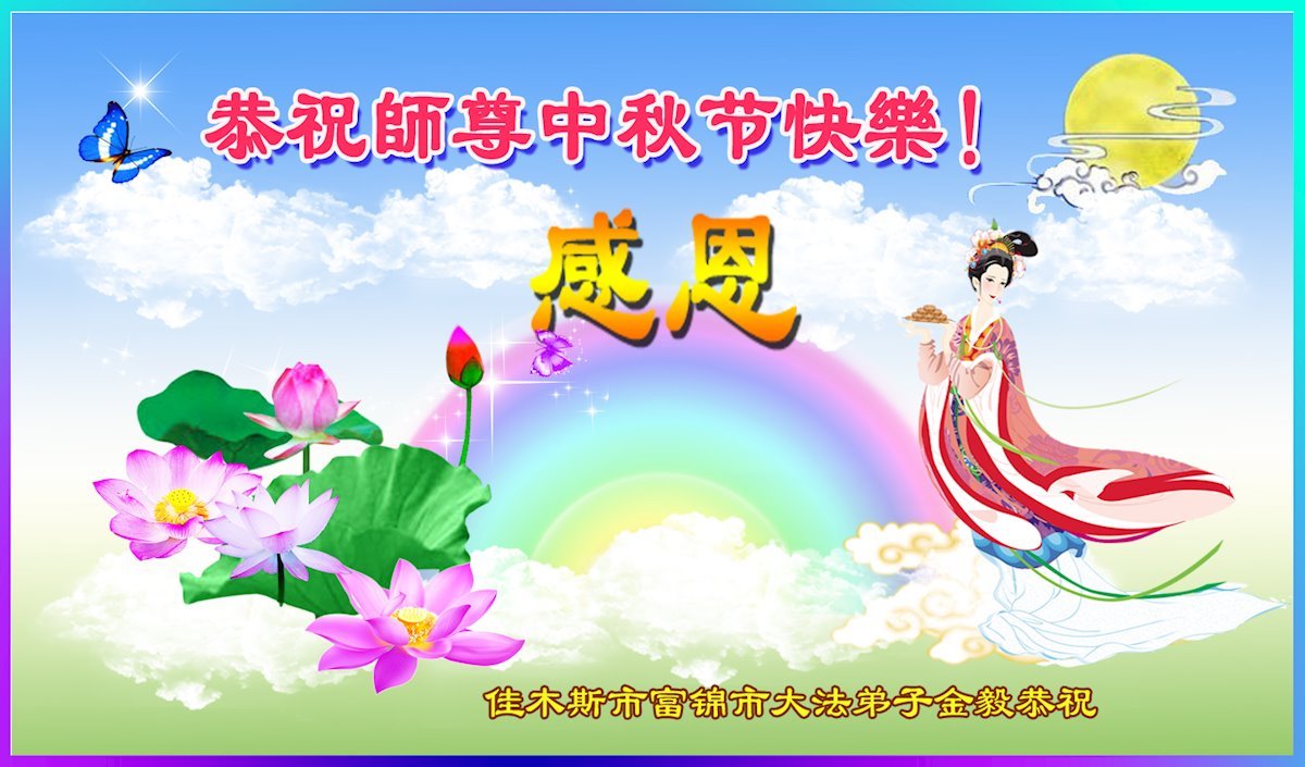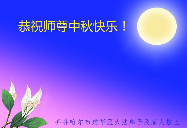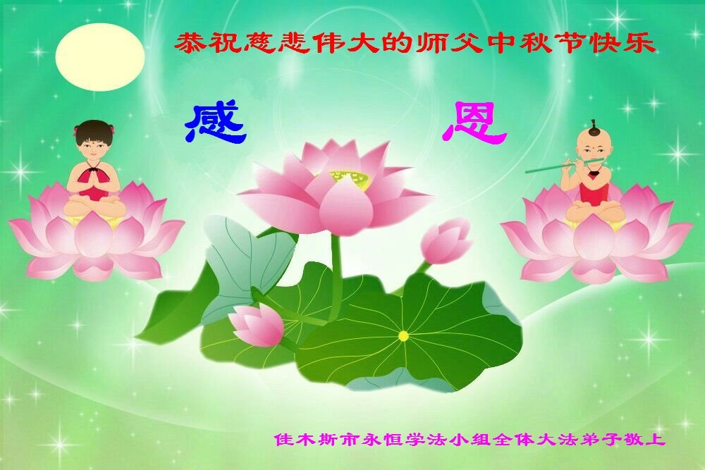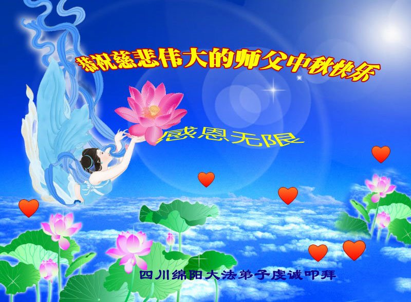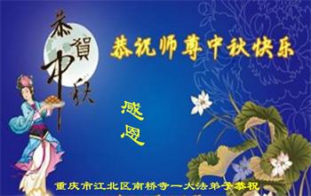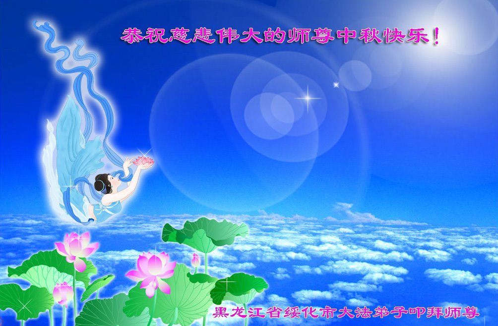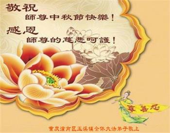 脑中装着大法,生命就有了希望,心中装着众生,再苦也不觉的辛劳,感恩师尊将法轮大法的法理捧到了我们的面前,赋予我们大法弟子的神圣荣光。每逢佳节倍思亲,值此中秋佳节即将来临之际,衷心遥祝师尊中秋节快乐!愿法轮大法好的佛光普照人间!