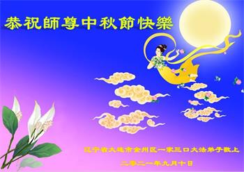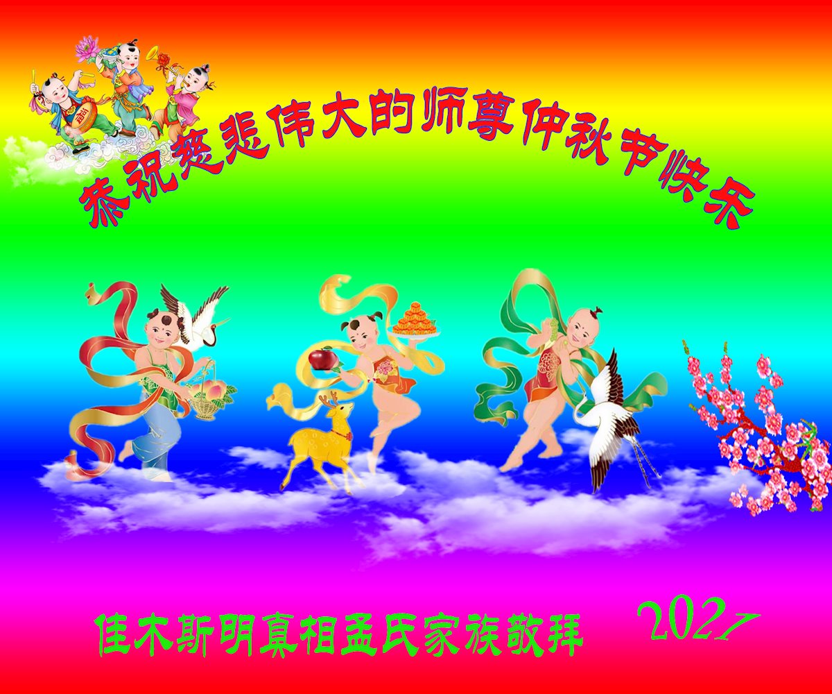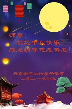 【明慧网二零二一年九月二十日】二十九年前,法轮大法创始人李洪志大师将真、善、忍大法洪传于世,上亿人身心受益。大江南北、五湖四海,每一名大法弟子深深庆幸在此末法末劫之时,得到如此珍贵的宇宙大法,得到师尊亲自救度。在这合家团圆的中秋节,来自中国大陆五十行业的大法弟子想念师尊,遥拜师尊中秋好!