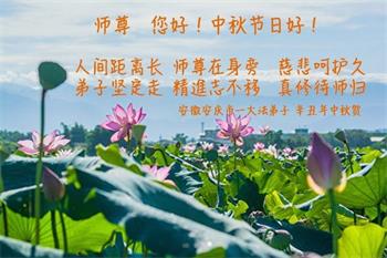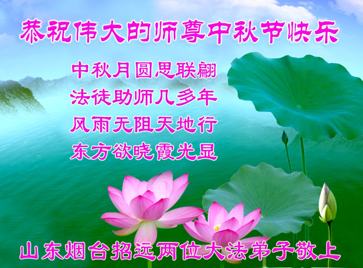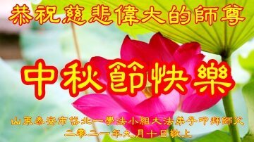 在中秋佳节到来之际,烟台市教育系统大法弟子想念师父,感恩师尊的慈悲苦度!在剩下不多的时间里,弟子们一定修好自己救度众生,惟愿师尊笑。