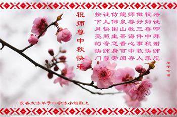中秋月圆问师好,弟子跪拜谢师恩。