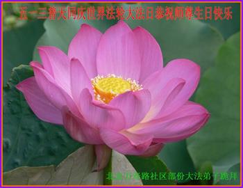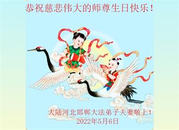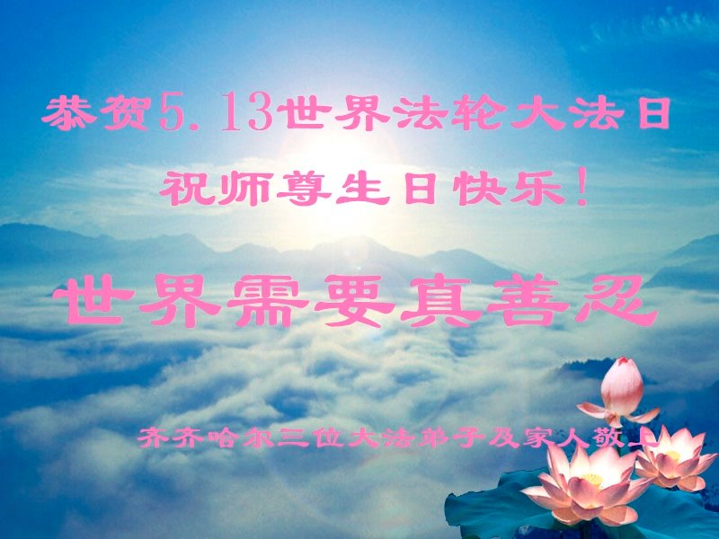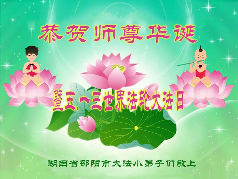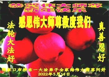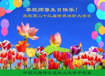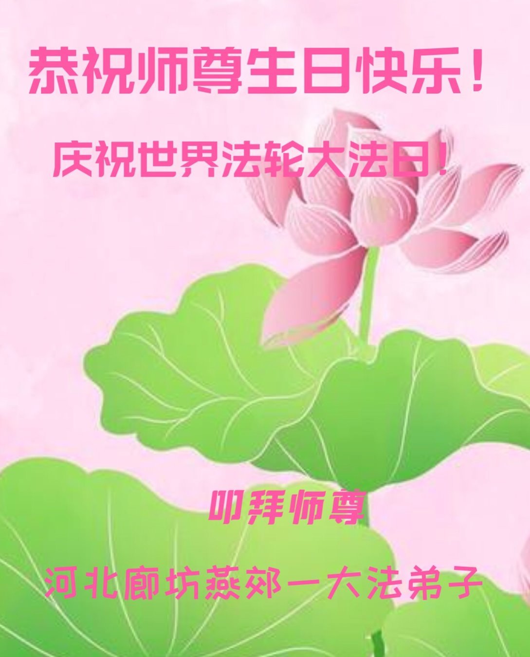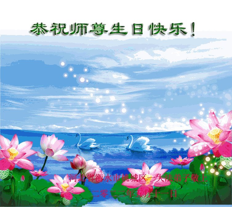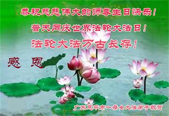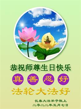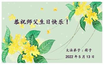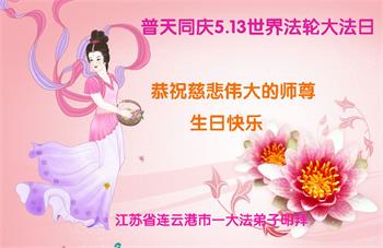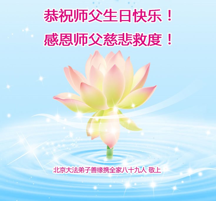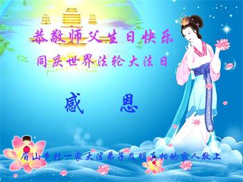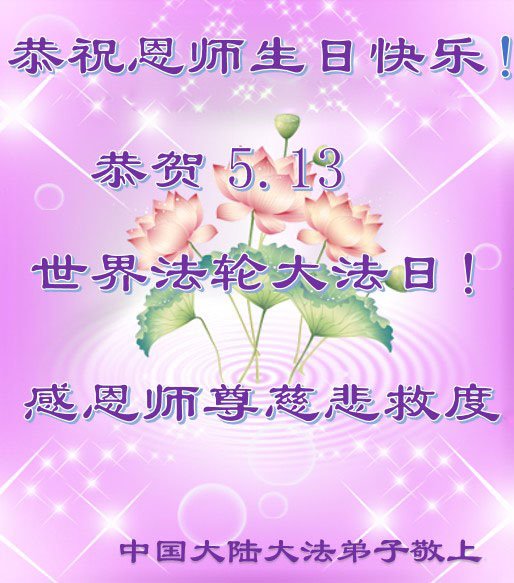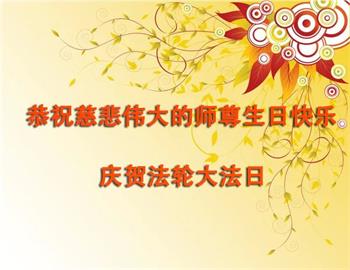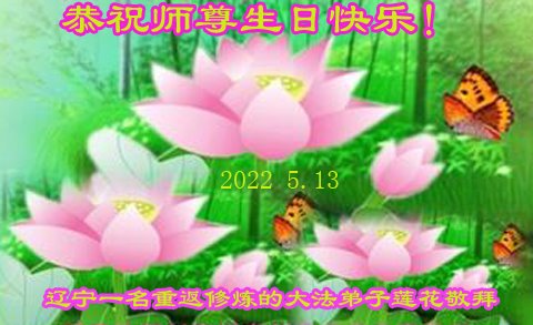 在这里借明慧网恭祝大法师父生日快乐!感恩大法师父救命之恩!是大法师父把我这个危重病人从死亡线上救了回来,给了我第二次生命。我虔诚的敬念:法轮大法好!真、善、忍好九字真言获得新生,我对大法师父感恩不尽。再一次谢谢大法师父救命之恩!双手合十谢大法师父!