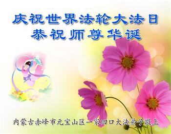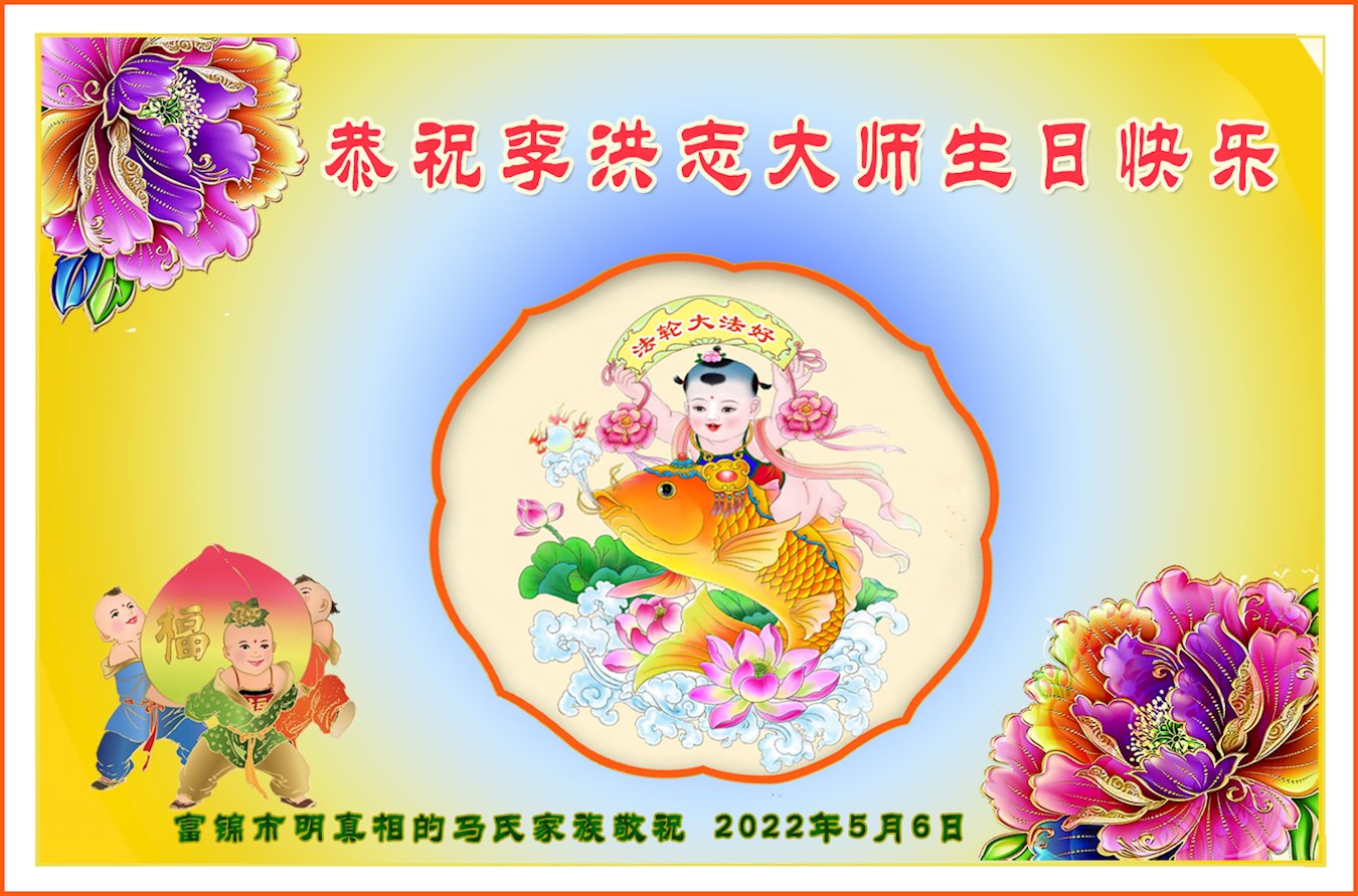 我天天供奉李大师,诚心念“法轮大法好”、“真善忍好”九字真言。每天端起饭碗来,我就会说:请李大师先吃!大法师父太慈悲了,我也不修炼,只爱看大法弟子发的真相资料,也只不过为蒙冤的法轮大法说句公道话,大师就把我和老伴的病治好了,是花多少钱都买不来的。李大师您辛苦了!我们全家人感谢李大师的救命之恩!恭祝李大师生日快乐!