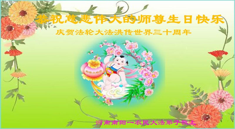 恭祝法轮大法洪传三十周年!恭祝慈悲伟大师尊生日快乐!