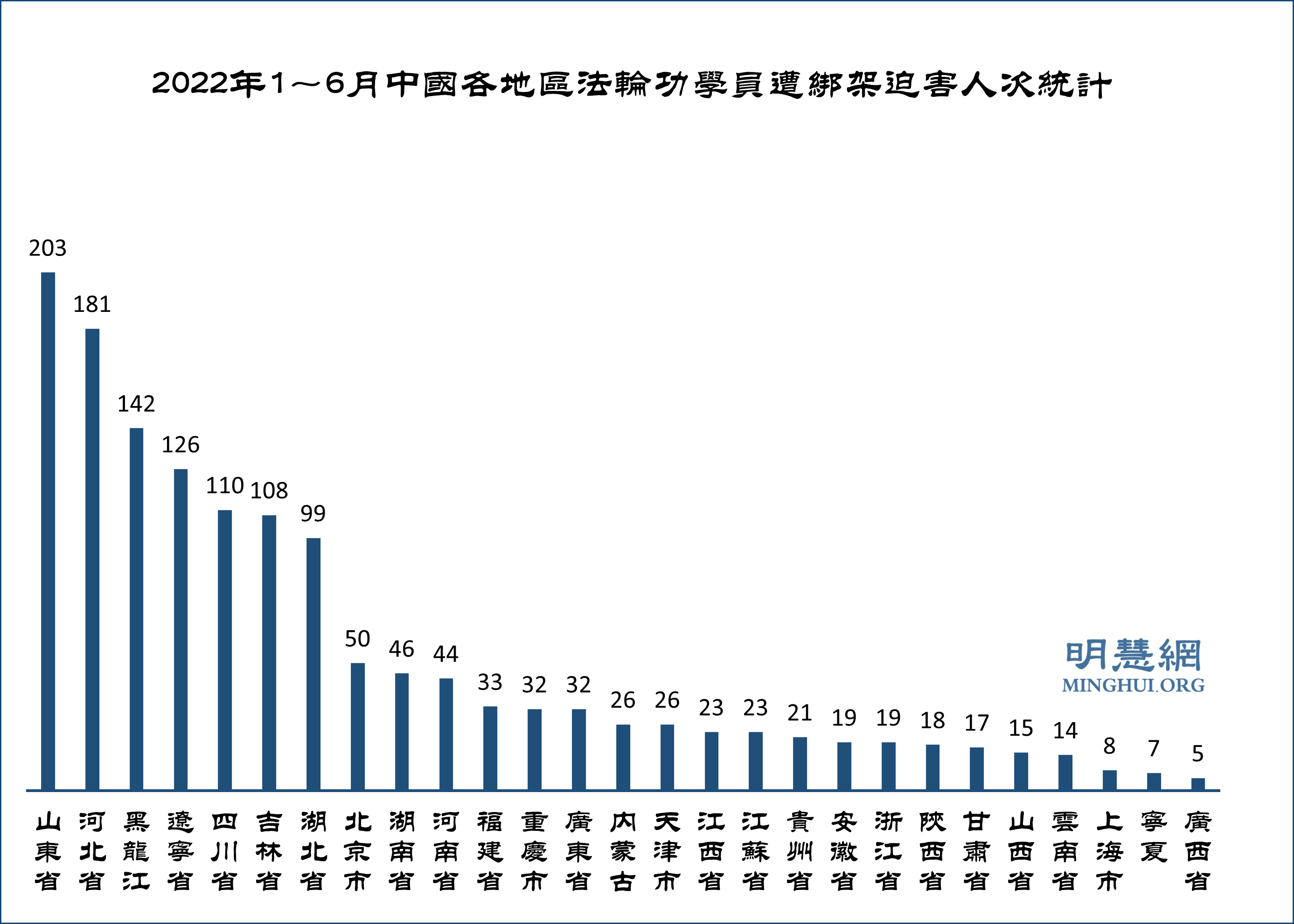 图:2022上半年中国法轮功学员遭中共迫害人次统计