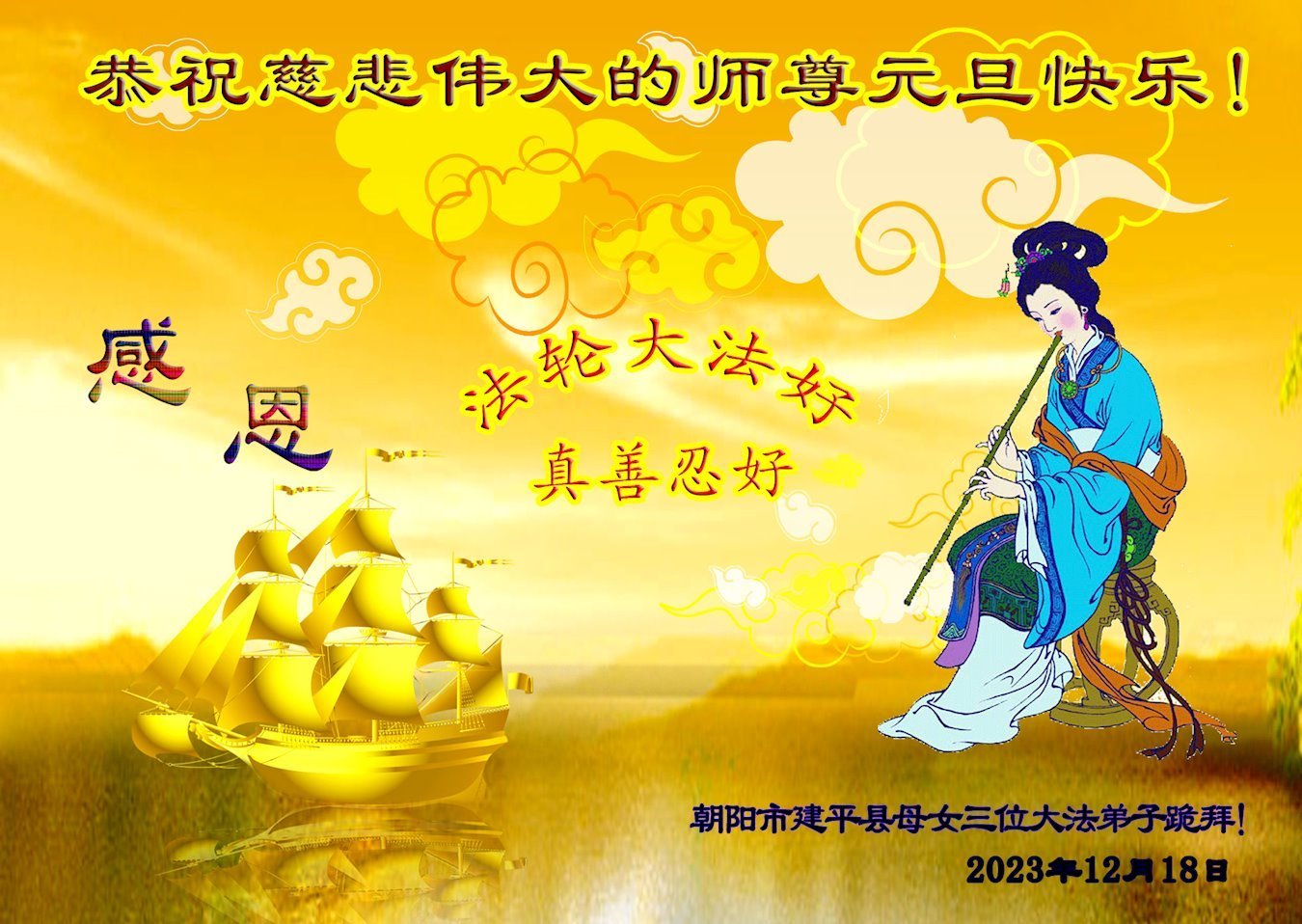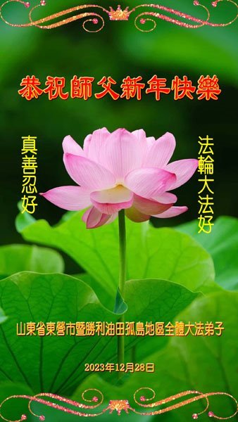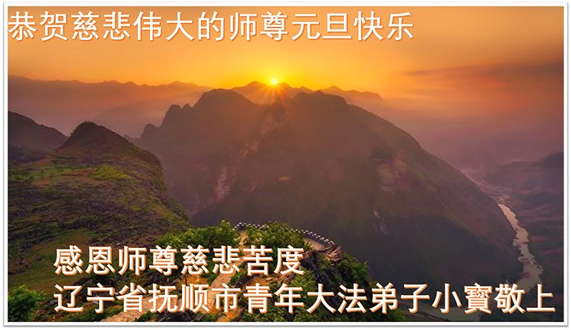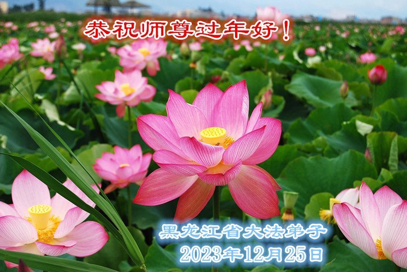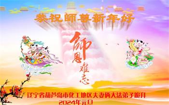 新年即将到来之际,辽宁省鞍山市一资料点全体大法弟子恭祝师父新年好!弟子们感恩师尊慈悲救度,保护弟子们平安走过纷乱不安的二零二三年。师尊为弟子们、为众生的巨大付出与承受,弟子用尽语言也无法表达对师尊浩荡洪恩的感激!唯有精進、听师尊的话、做好三件事,踏踏实实的修炼,坚修法轮大法到底,完成自己的神圣使命,圆满随师还!