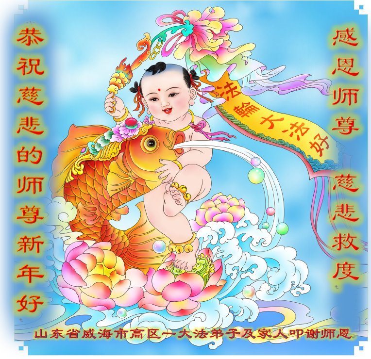 山东一家庭资料点的大法弟子给师父拜年,祝师尊新年快乐!我们一定配合好,做出精美的真相资料,让更多的有缘人明真相,得救度!弟子深知在师尊的保护下,我们家庭资料点多年来得以平稳的运转着,感恩师尊的慈悲保护与救度!