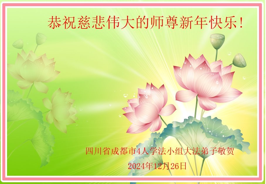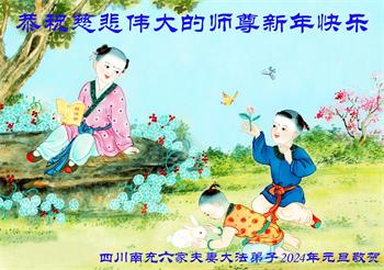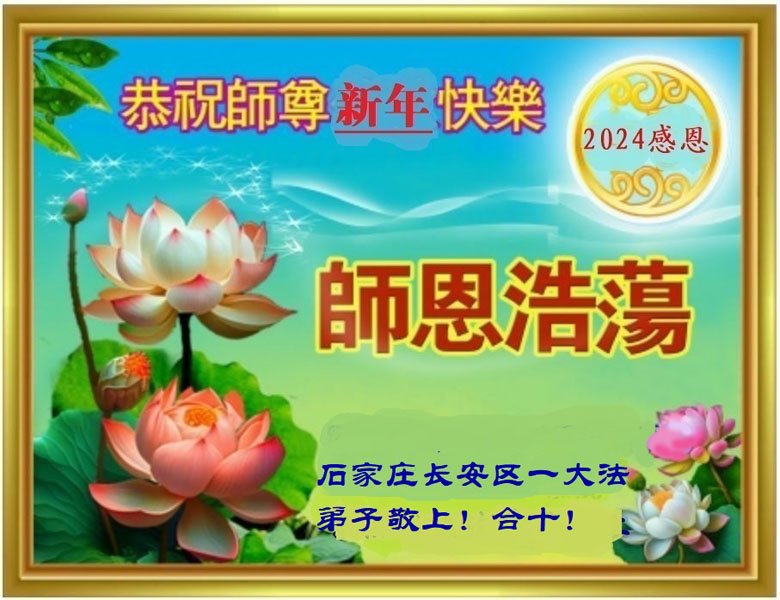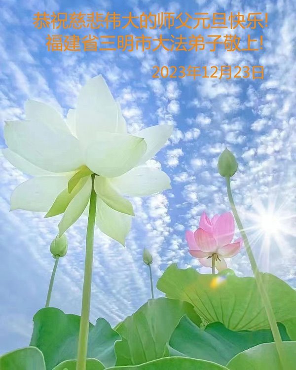 2024年元旦即将到来,弟子们怀着无比感恩的心,恭祝师父新年快乐!在新的一年里,弟子们要更加努力做好三件事,在做好上下功夫。学好法、发好正念、讲好真相,多救人。向内找,修心性,不断的锤炼、修正自己。走好走正修炼的路,兑现誓约,以报师恩!