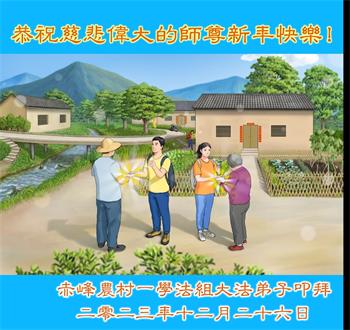 恭祝师父新年快乐!人类的任何语言都无法表达师父对弟子的慈悲救度之恩;88岁的母亲常“念法轮大法好、真善忍好”,谢谢师父慈悲保护,弟子盼望师父早日回大陆!