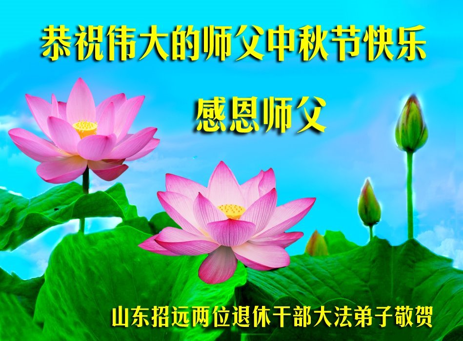 我是山东省聊城市茌平区一明白大法真相的人,家有贤妻、两个儿子、四个孙子。我读书不多,也没多大本事,但二十多年来,我全家老幼身体健康、阳光、好运连连,日子过的红红火火。孩子们事业有成,有车有楼,方圆十里的百姓都羡慕。为啥我家这么顺?我大声告诉世人:因我明白大法真相并做了三退,天天念九字真言,还保护过一位大法弟子,因此大法师父送我全家这么些福份。我们全家感动、感恩,感谢大法师父给予我全家的所有。以最真诚的心祝慈悲伟大的大法师父身体健康、万事顺利,中秋节开心快乐!