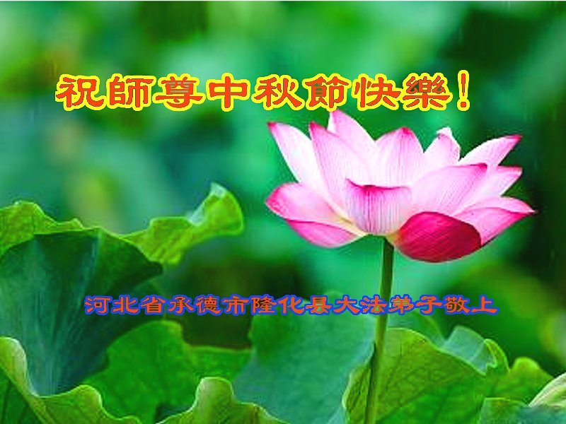 值此中秋佳节,辽宁丹东医疗系统大法弟子向伟大慈悲的师父问好!恭祝师父中秋节快乐!弟子想念师父!师父辛苦了!感恩师父慈悲救度,师恩难报!我们唯有精進。叩拜师尊!